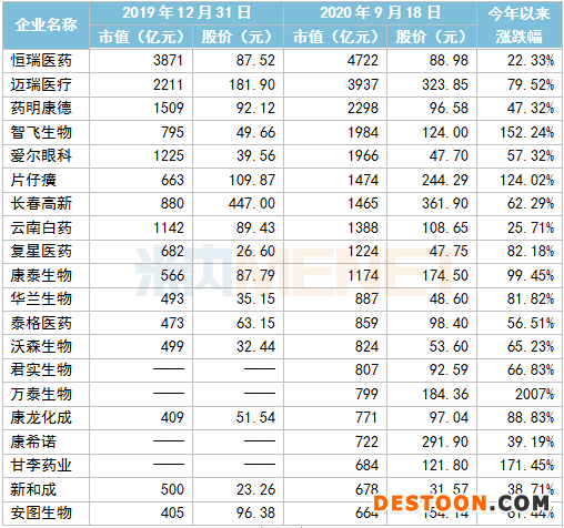 2017年11月,恒瑞醫(yī)藥成為首只市值超2000億元的醫(yī)藥股;2018年6月,市值突破3000億元;2019年10月,市值沖破4000億元;今年6月,市值再創(chuàng)新高突破5000億大關,穩(wěn)坐“醫(yī)藥股一哥”寶座。而近期A股市場各板塊出現(xiàn)不同程度的回調,截至9月18日收盤,恒瑞醫(yī)藥市值回落至4722億元,今年以來漲幅超20%。
