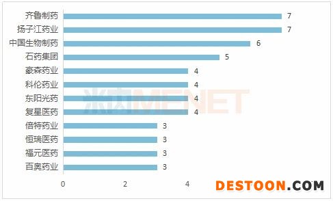 滿足條件企業(yè)數(shù)達5家及以上的藥品