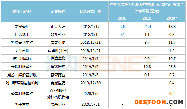 注:2020年銷售額為中國(guó)公立醫(yī)療機(jī)構(gòu)H1數(shù)據(jù)+中國(guó)城市實(shí)體藥店全年預(yù)測(cè)數(shù)據(jù)