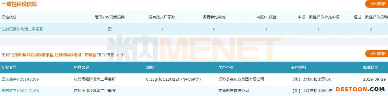 資料顯示,注射用福沙匹坦雙葡甲胺是一種神經(jīng)激肽-1(NK-1)受體拮抗劑,是阿瑞匹坦的前體藥物,臨床用于預(yù)防化療藥引起的惡心和嘔吐,該產(chǎn)品已成為治療腫瘤的處方組合必備的止吐藥。
